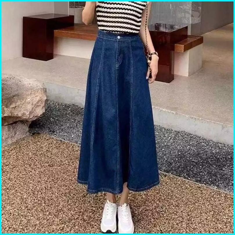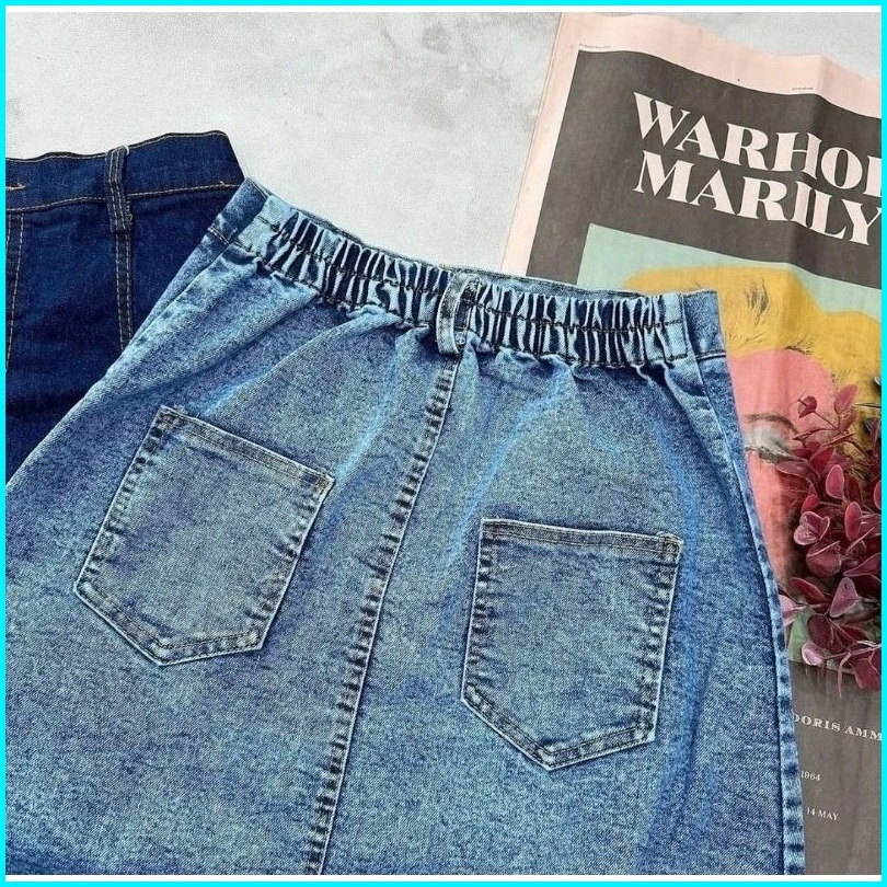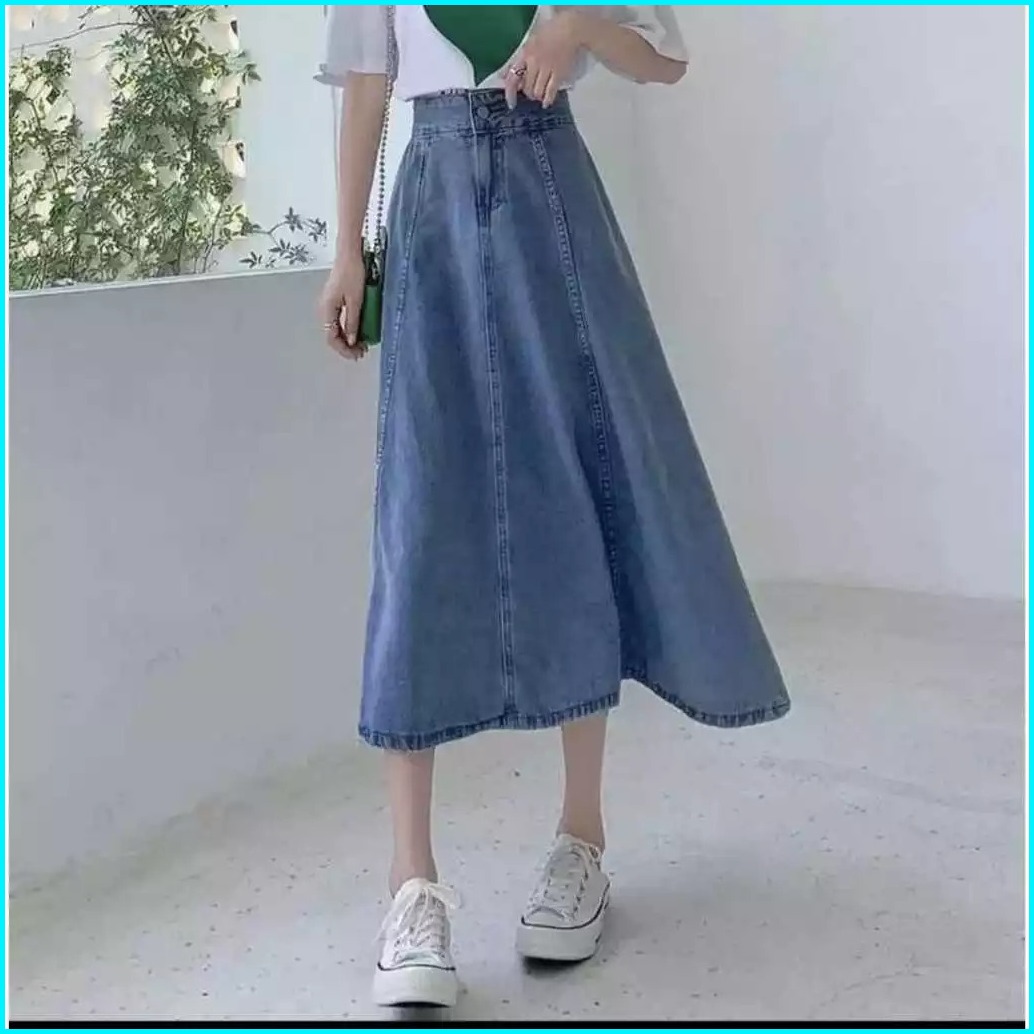 Jisso Rok Jeans Mayung Premium Wanita A- Line 7 8 Model Payung Pinggang Karet - Rok Wanita Hihgwaist