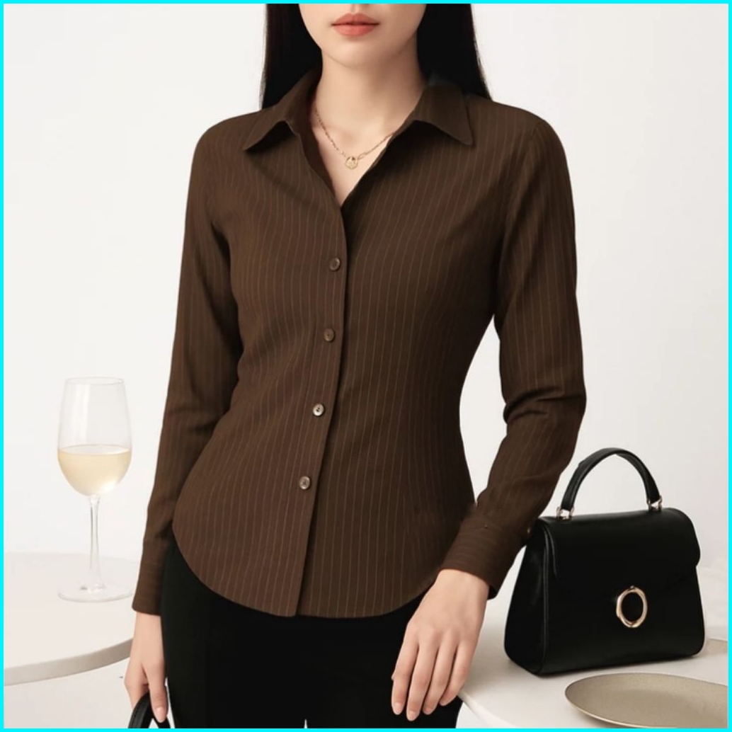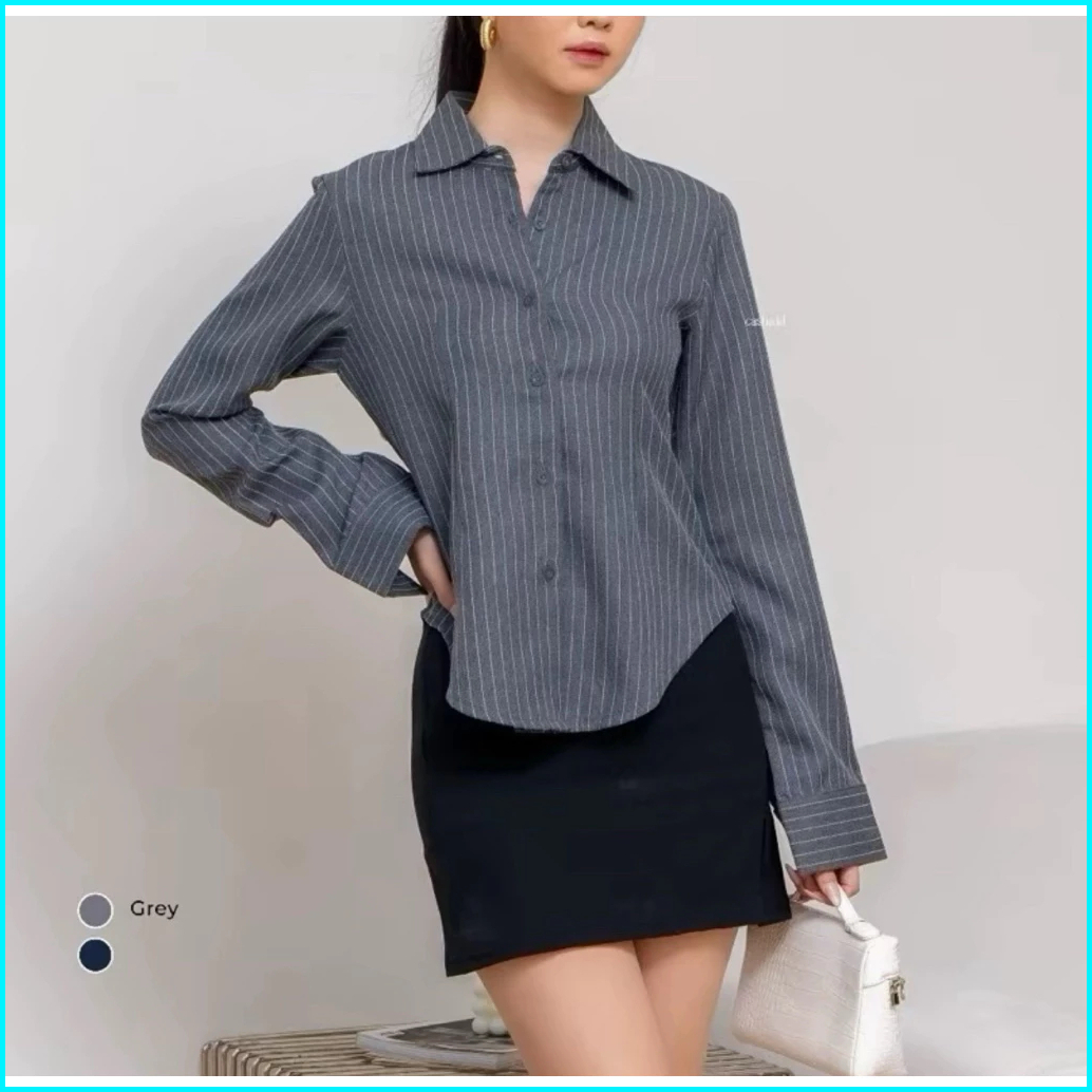 Luna Stripe Kemeja Wanita Fitted Slim Fit - Kemeja Salur Slim Fit