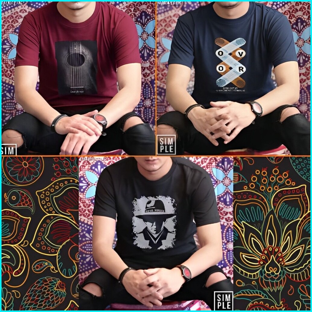 Isi 3pcs Kaos Distro Kaos Pria Lengan Pendek Kaos Pria Distro Kaos Oblong Bahan Katun