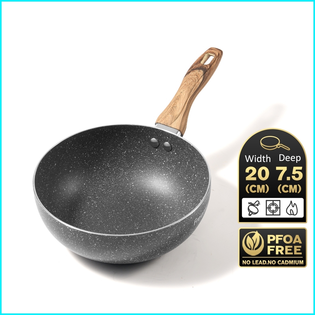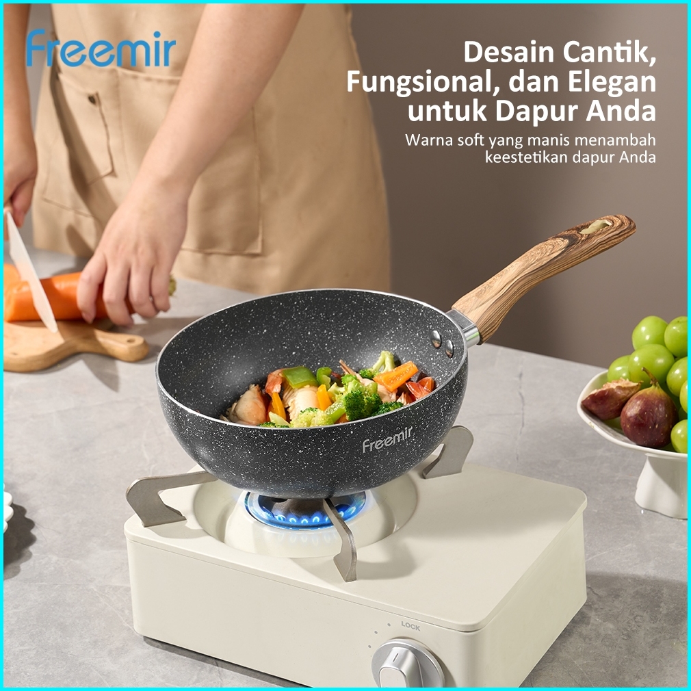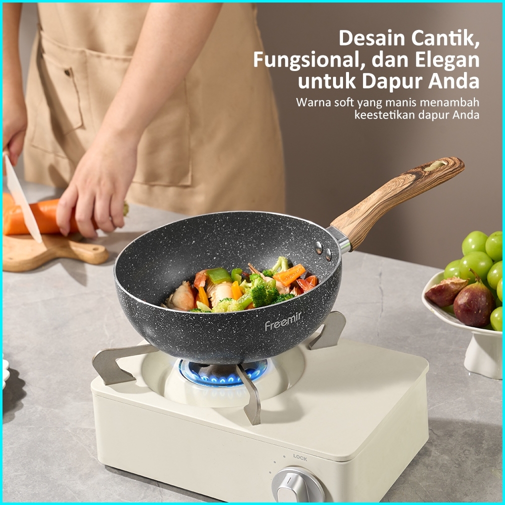 Mall Freemir Aluminum Pan 20cm Tutup Kaca Anti Lengket Gagang Kayu Ekstra Besar Peralatan Dapur Memasak Serbaguna