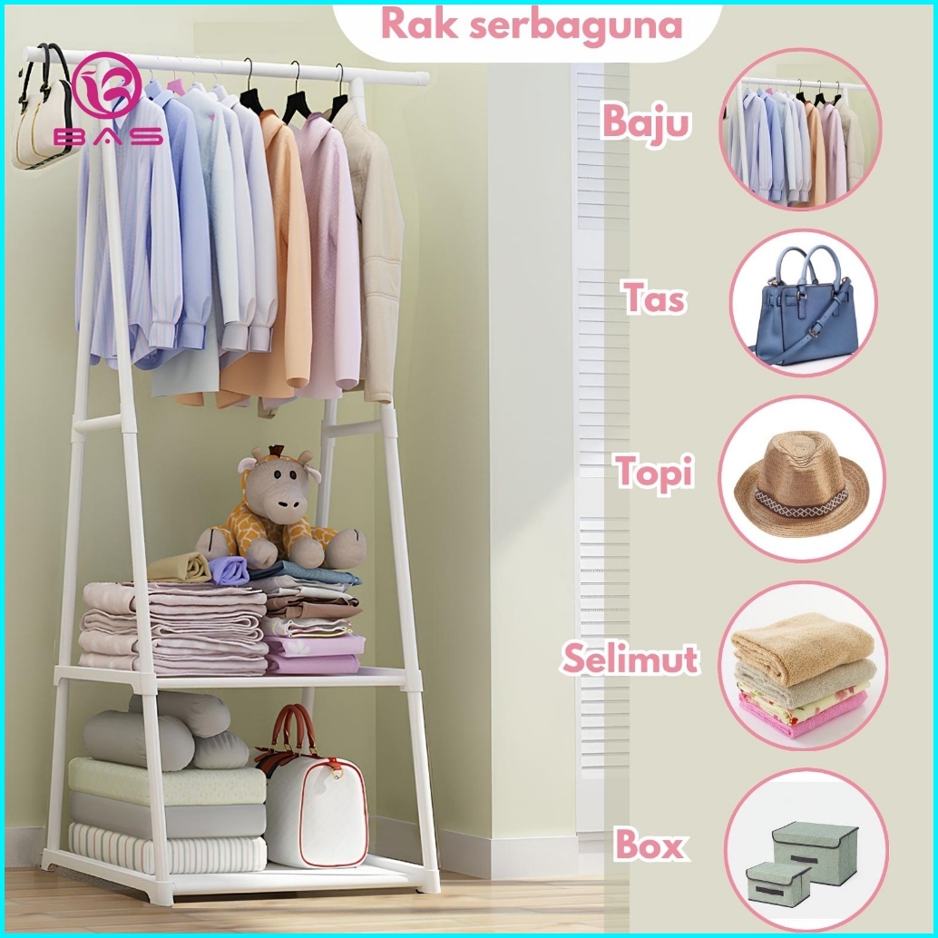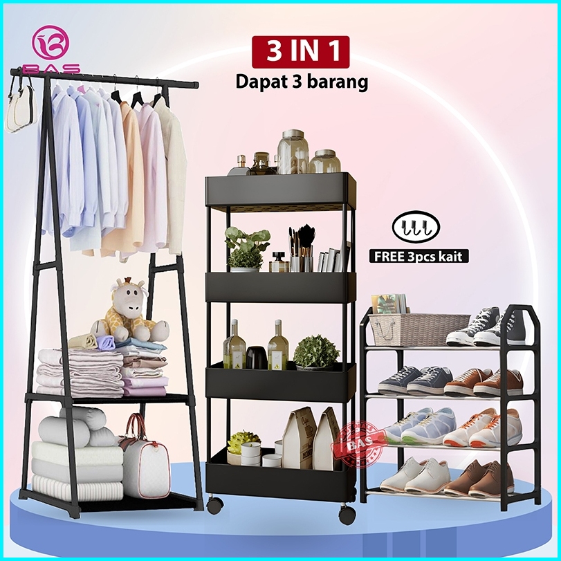 Bas Combo 3 In 1 Triangle Rak Baju Mutifunsi Rak Susun Serbaguna Dengan Roda Rak Sepatu 4 Tingkat