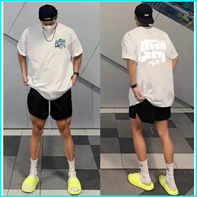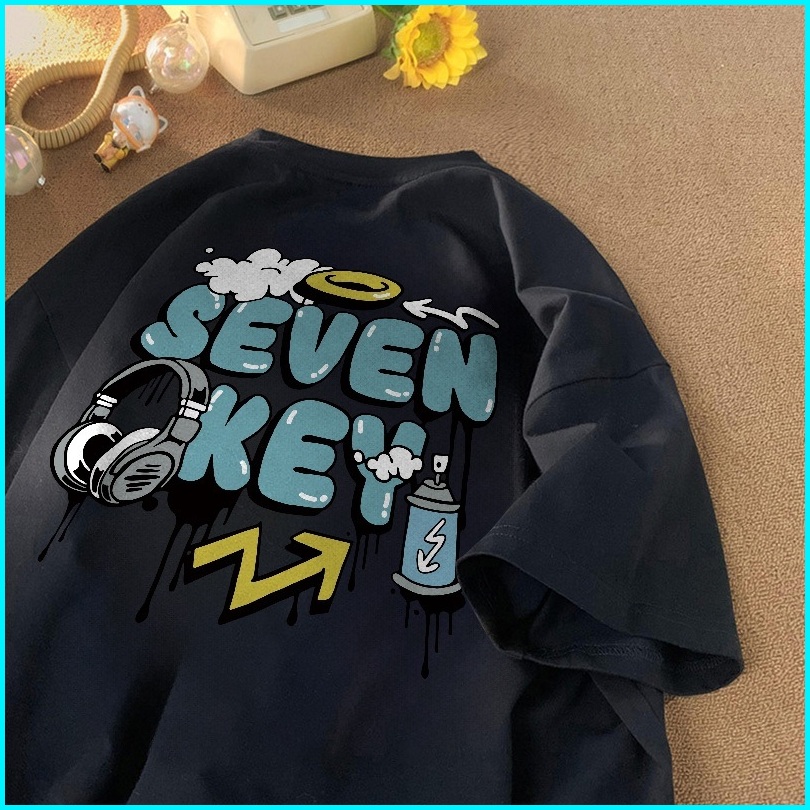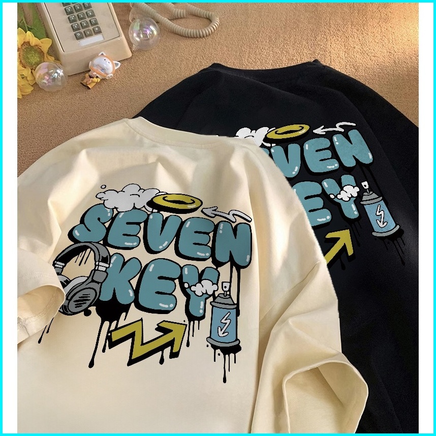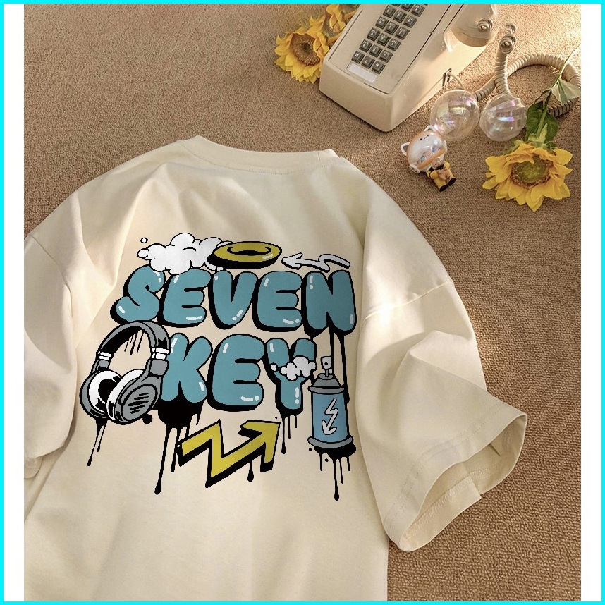 Kaos Lengan Pendek Pakaian Pria Dan Wanita Oversize Vintage Seven Key Bergaya Netral - Baju Kaos Cream Cowok Asli 100 La