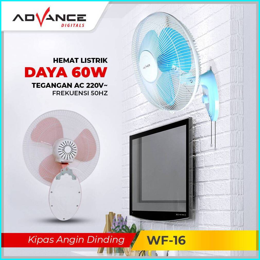 Garansi 1 Tahunadvance Kipas Angin Dinding 16 Inch Hembusan Angin Kencang Dengan Daya 60 Watt Kipas Low Watt Fan