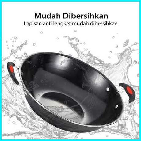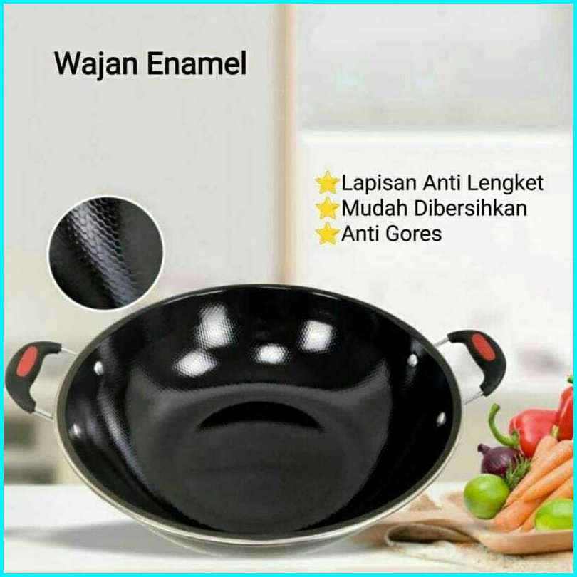 Wajan Penggorengan Enamel Anti Lengket 34 Cm Wajan Kuping Anti Gores Wajan Serbaguna Warna Hitam