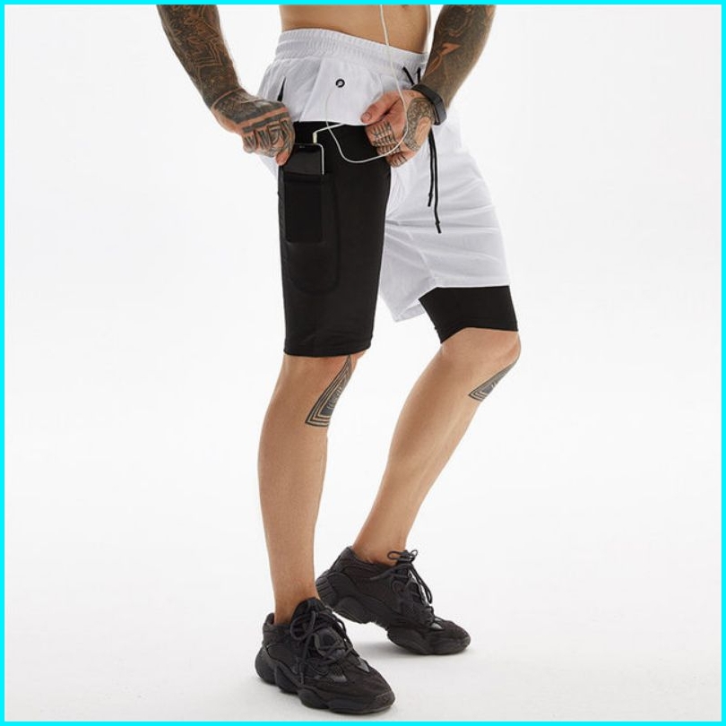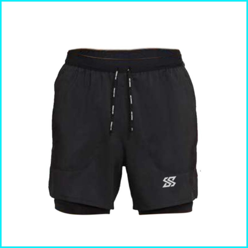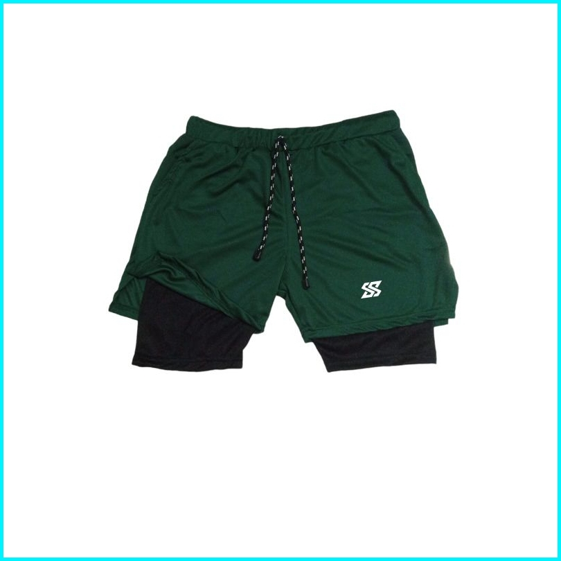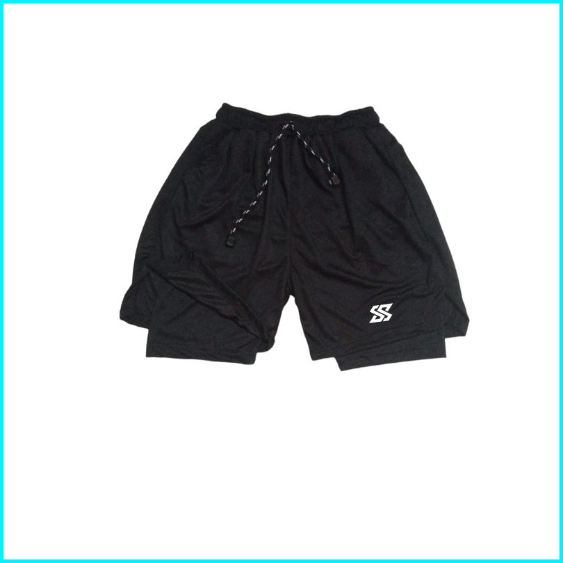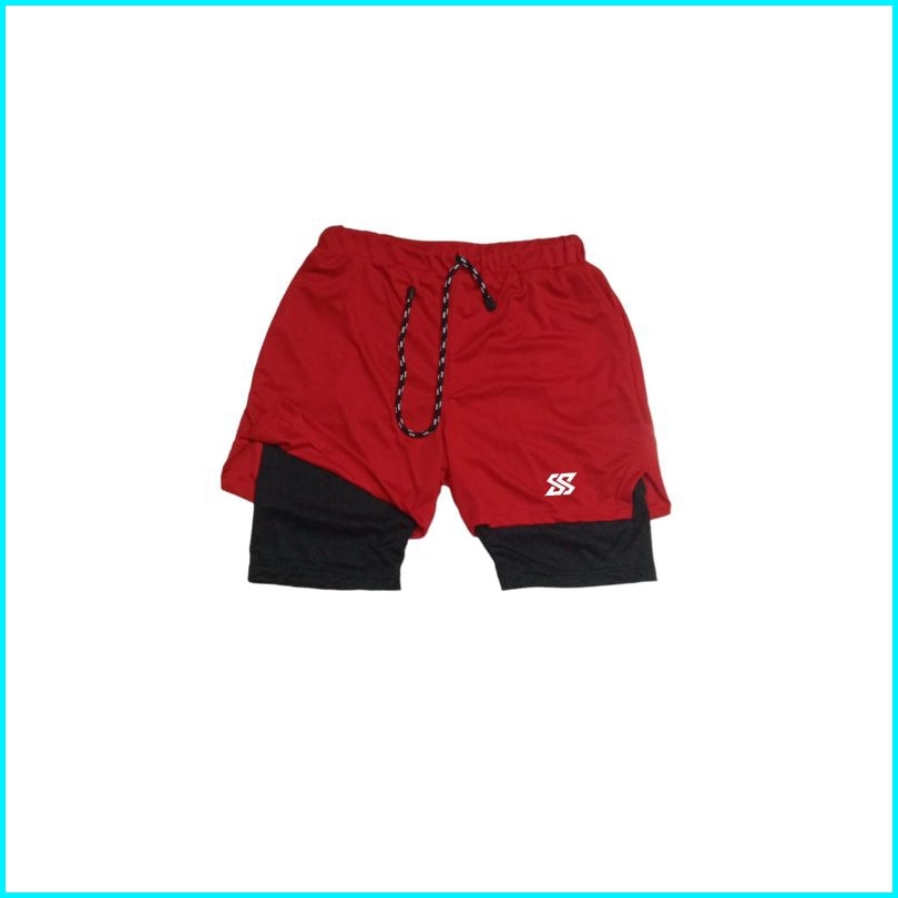 Celana Olahraga Lari Double Short Voly Running Futsal Joging Fitness Gym Pria Wanita