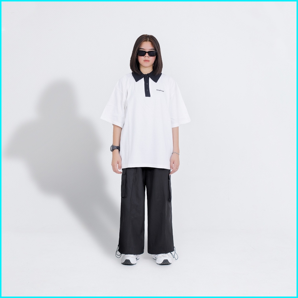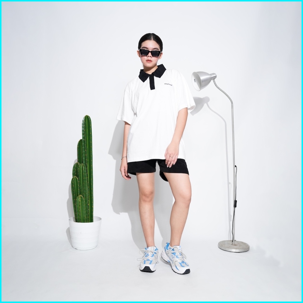 Putih Kancing hitam, basic logo hitam, Shatsu Hitam V1
