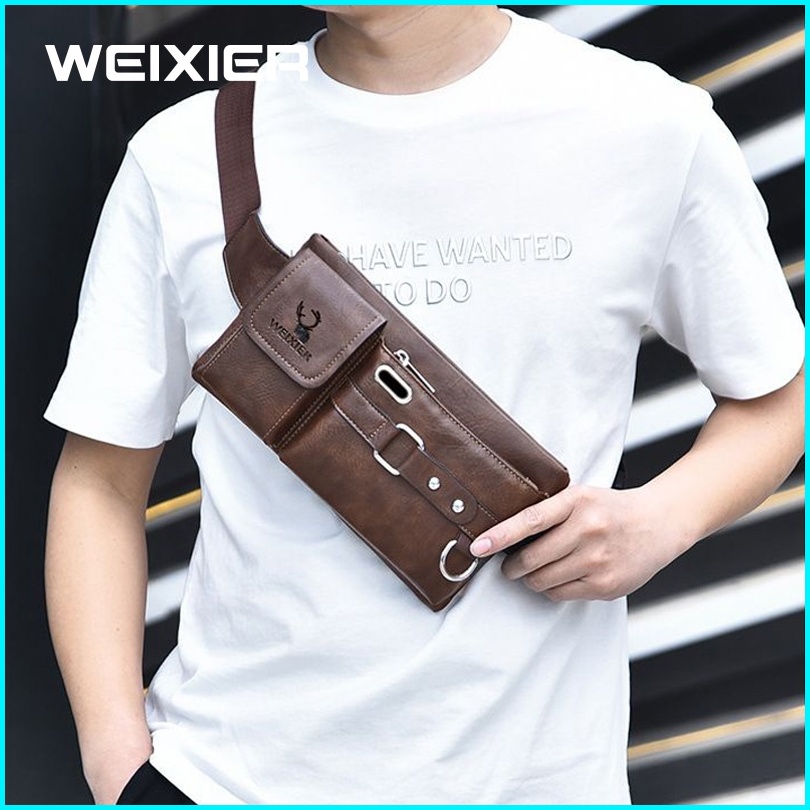 Weixier 8110 Tas Selempang Pria Kulit Waist Bag Anti Air Wx-os