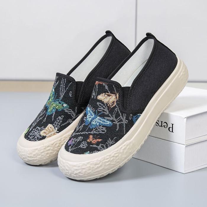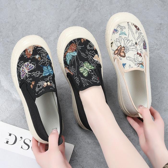 [Star]NW059 Sepatu Slip On Wanita Motif Kupu-Kupu - Hitam, 36