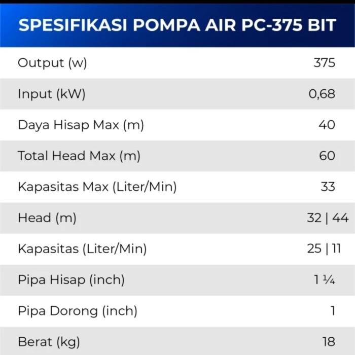 SHIMIZU Pompa Jet Pump 375wt PC375BIT Pompa Air Sumur Dalam PC 375 BIT