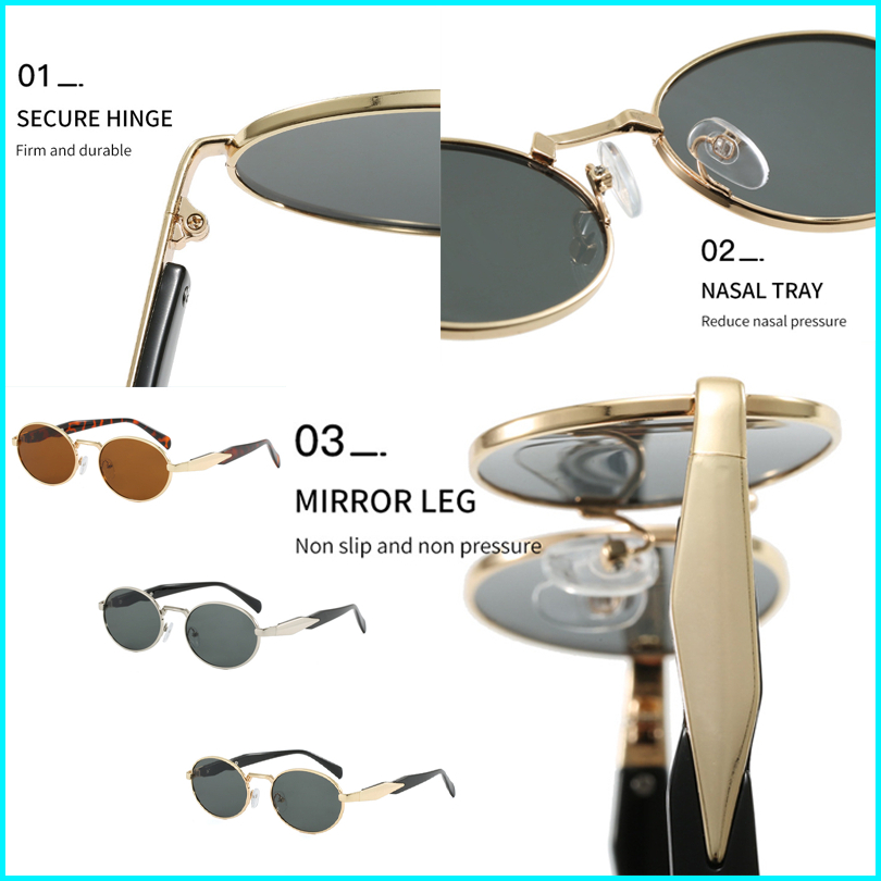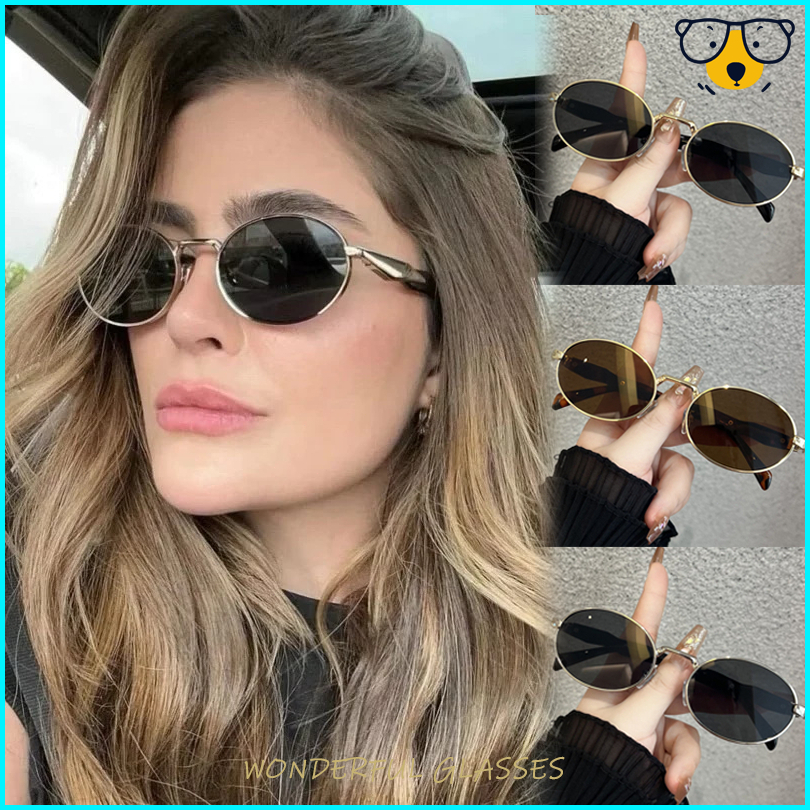 Kacamata Htiam Uv400 Matahari Logam Elips Wanita Pria