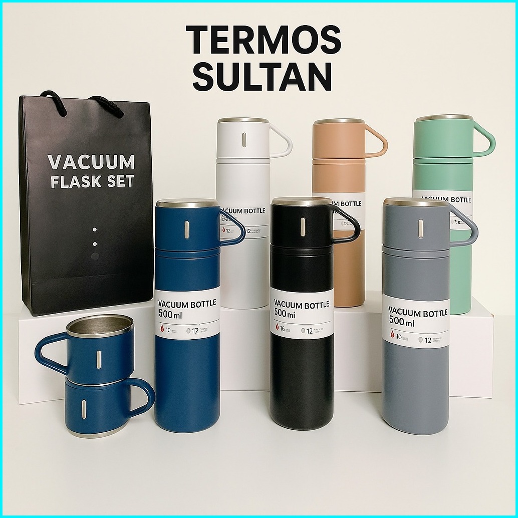 Termos Sultan Vacuum Flask Set Hampers Botol Minum Cangkir Premium 500 Ml Panas Dingin Tahan Lama