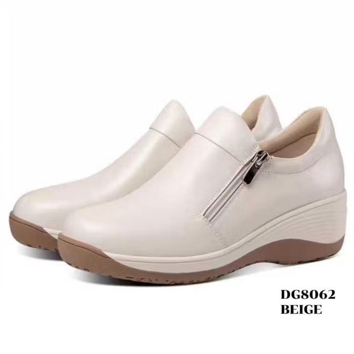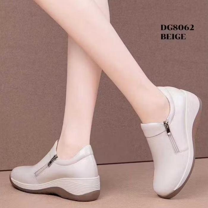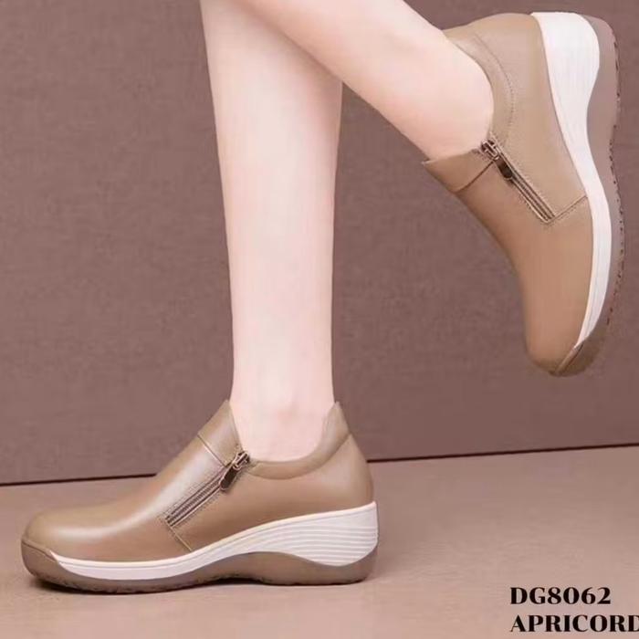 [Star]DG8062 BEIGE Sepatu Sneaker Wedges Wanita Simple Zipper Terbaru Coklat Casual Shoes Bahan Sintetis Nyaman & Tahan