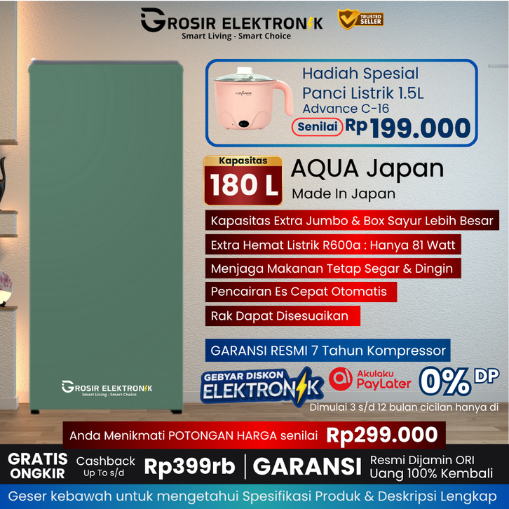 GRATIS ONGKIR - Kulkas 1 Pintu 180L Jumbo Freezer [ AQUA JAPAN AQR-D5 165L - 225L ] - kulkas 1 pintu aqua - K1P