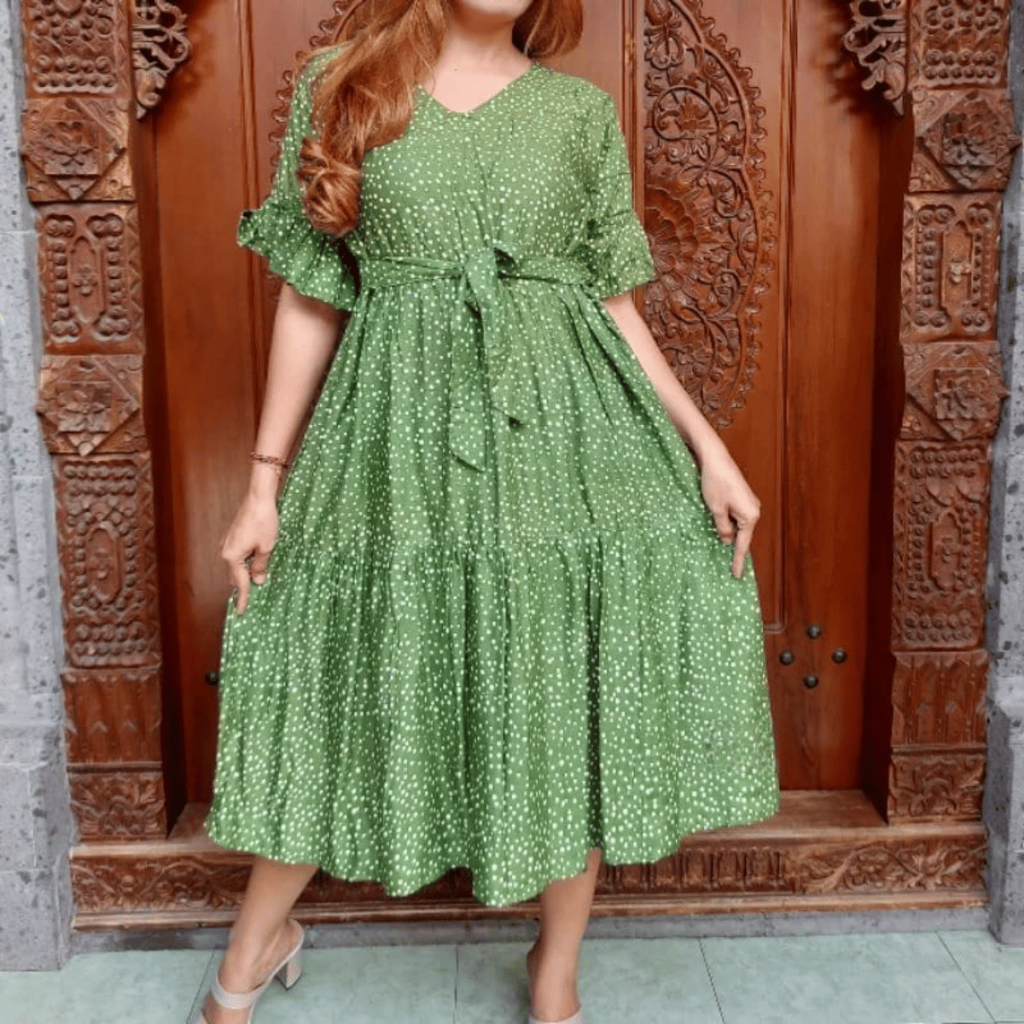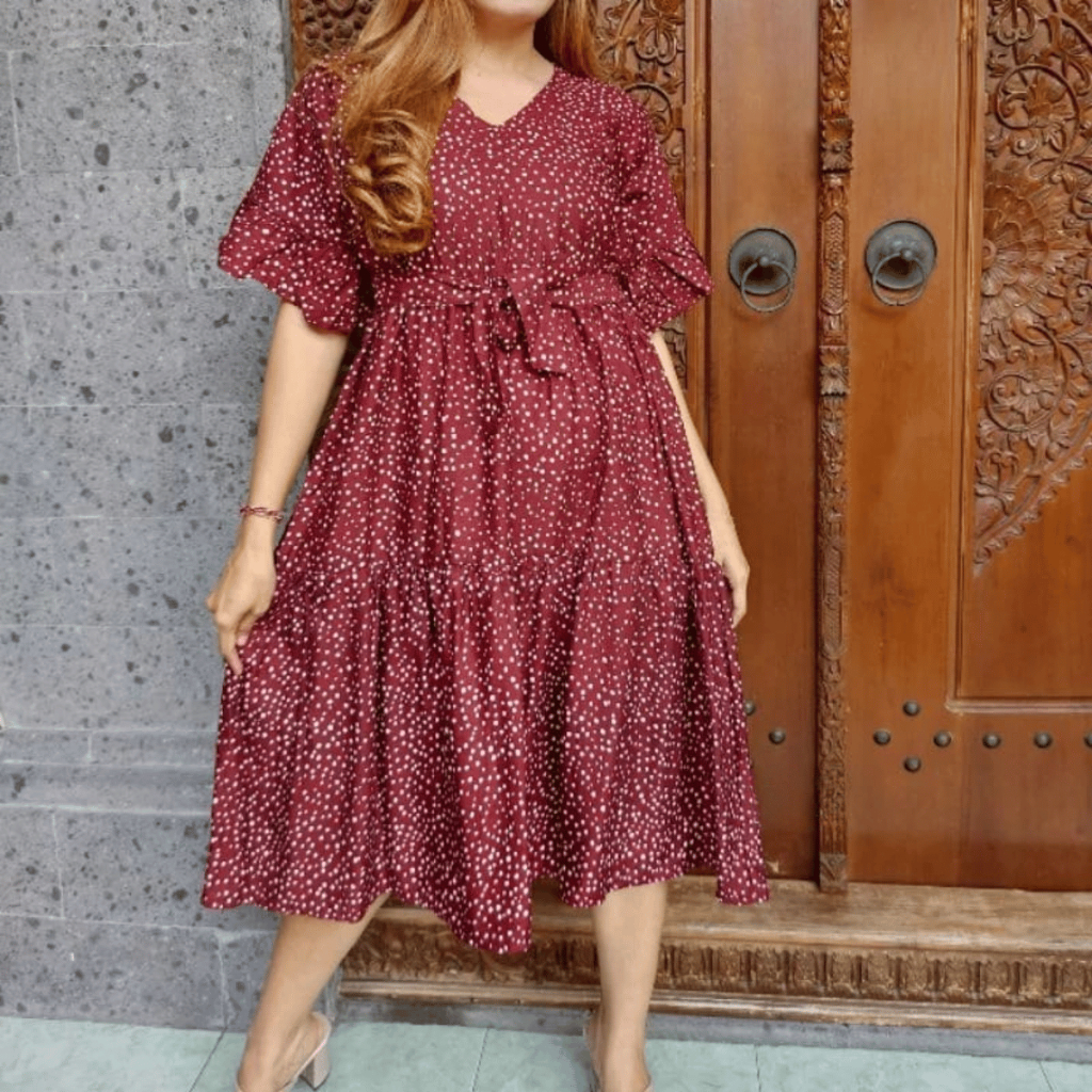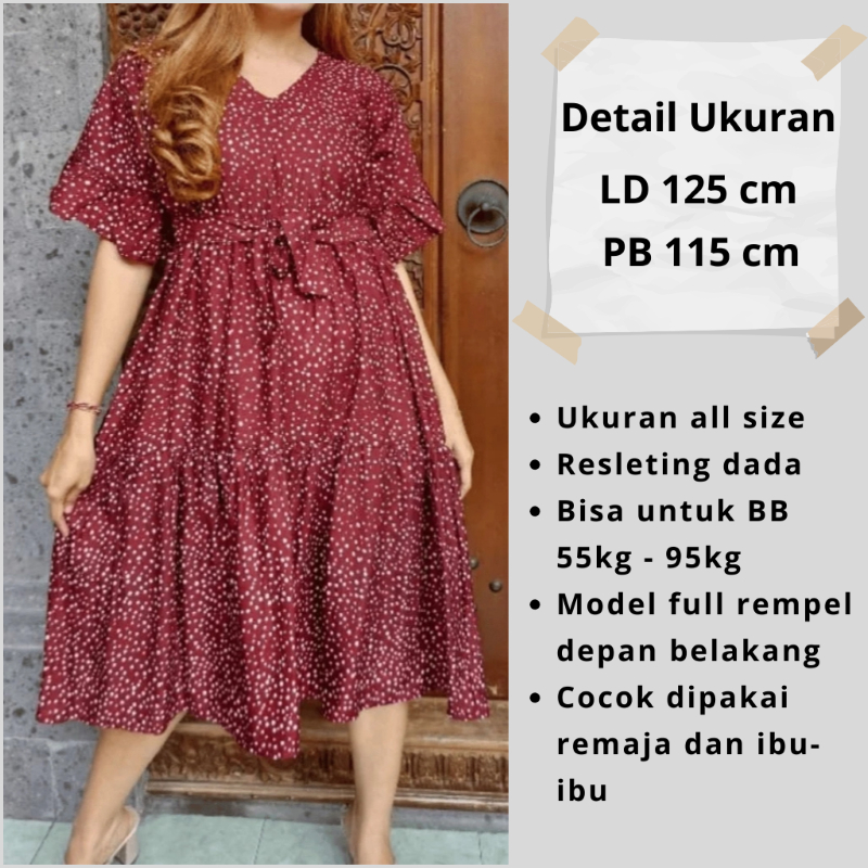 Daster Kekinian Terbaru Midi Dress Jenima Busui Jumbo Motif Polkadot Bahan Rayon Premium Tali Samping