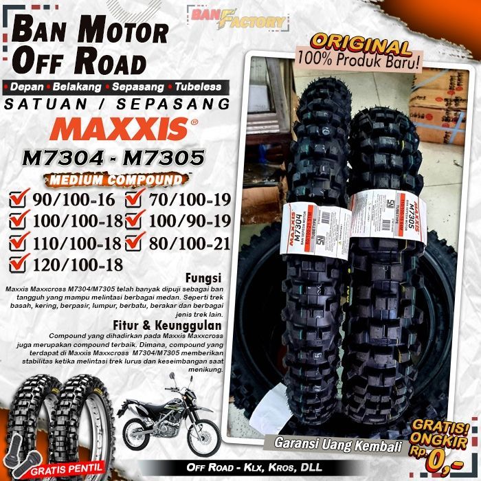 Ban Motor KLX Maxxis M7304 M7305 Ring 21 Non Tubles Ban Motor Tubetype KLX Trail Kros Ring 18