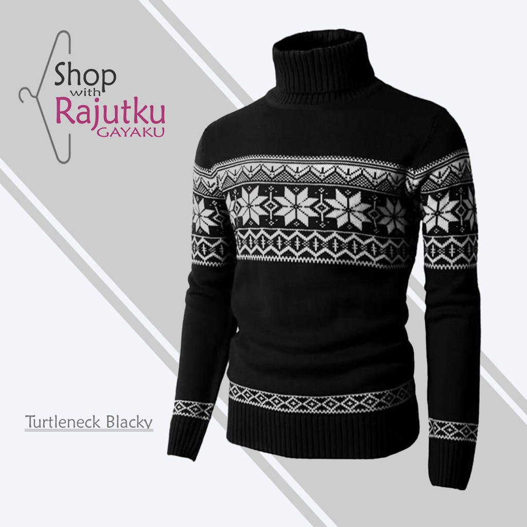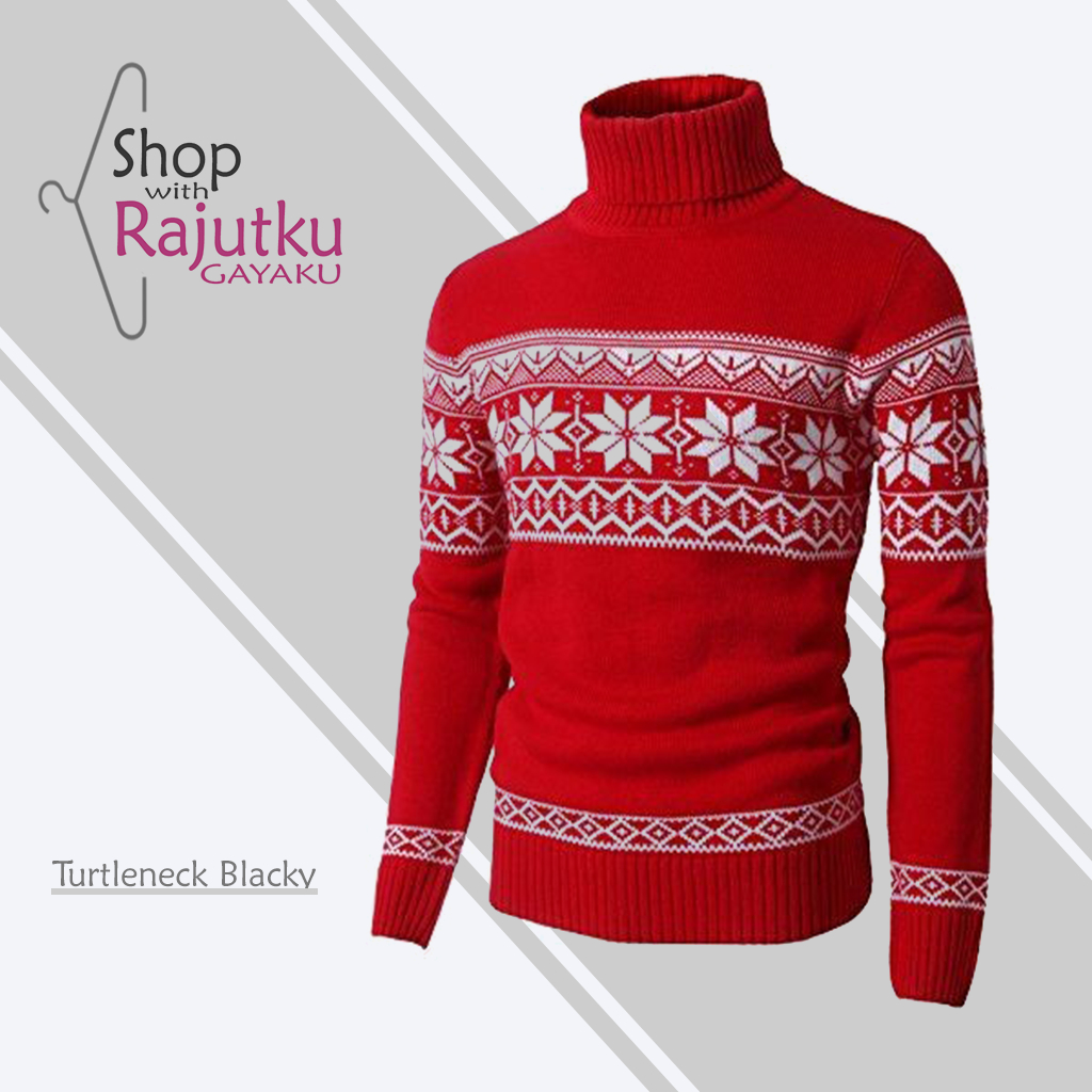 Sweater Rajut Kerah Tinggi Pria Keren Terbaru 2025 Tebal Sweter Rajut Cowok Korean Style Motif Blacky