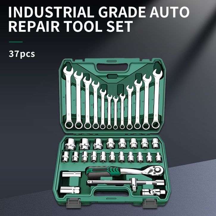【Bisa .】ISKU Tool kit Set alat Kunci Sok set 37pcs/kunci pas Set 12pcs 8-19mm 1/2 kunci Mata Sok lengkap 19pcs Kombina
