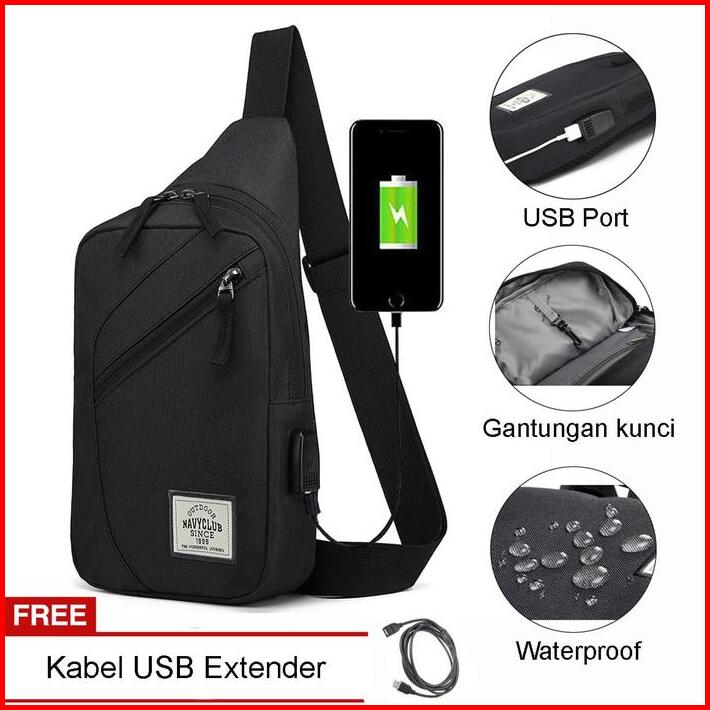 Navy Club Tas Selempang Travel Usb Port-tas Pria Wanita Ejcj