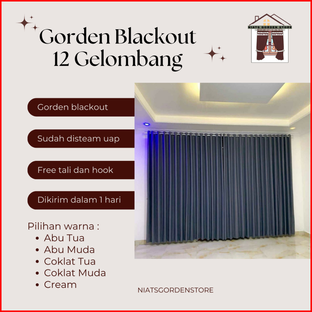 Gorden Blackout 12 Gelombang Hordeng Jendela Minimalis Gordeng Sekat Ruangan Tirai Pintu Bisa Custom