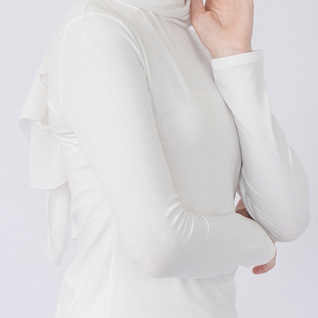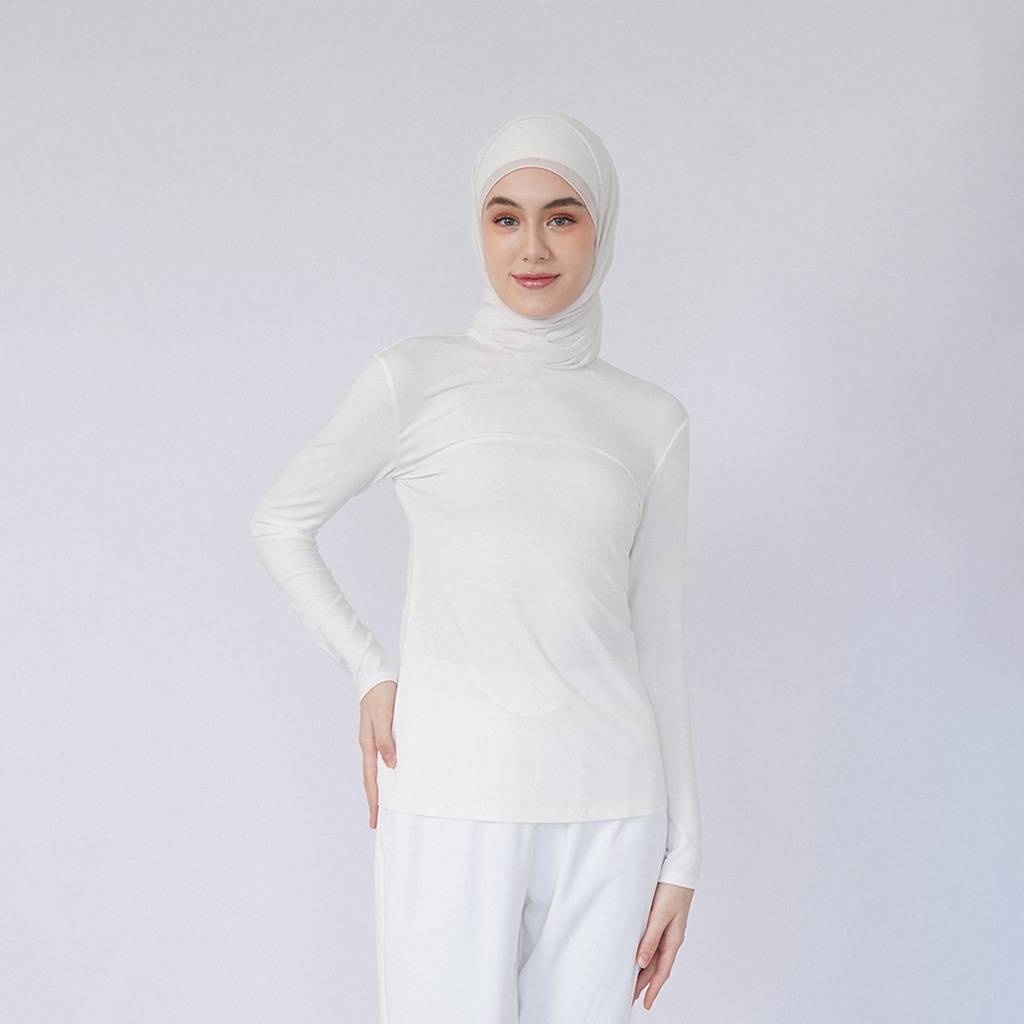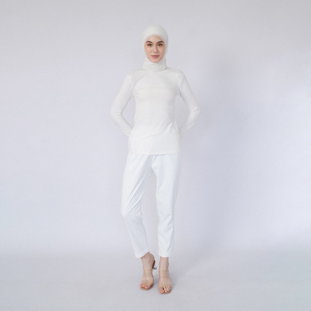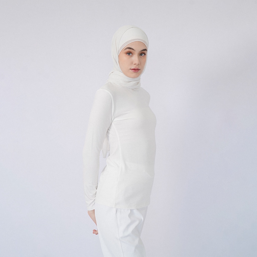 [Mall] QUEENSLAND FUNNEL NECK MANSET POLOS LENGAN PANJANG WANITA LIN000496Q OFFWHITE