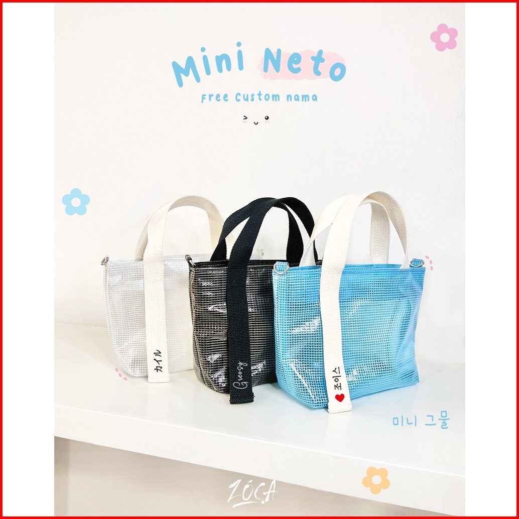 Zoca Mini Neto Bag - Pvc Jaring Free Custom Nama Tote Bag Hand Bag Tas Wanita Tas Mika Tas Jelly Korea Tas Konser