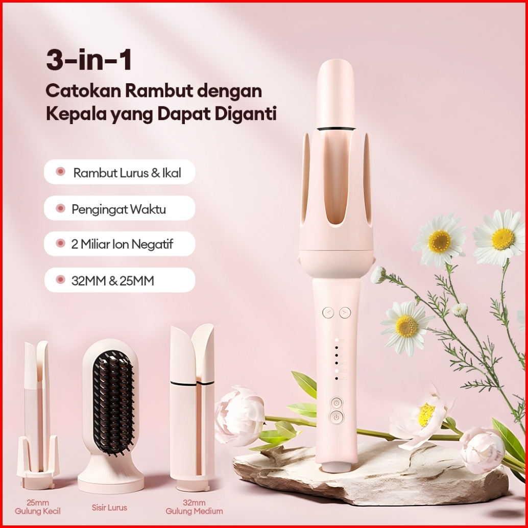 Jvjh Catokan Rambut Curly Otomatis 3-in-1 25mm 32mm Multifungsi Sisir Catok Pelurus Rambut Kepala Pengganti
