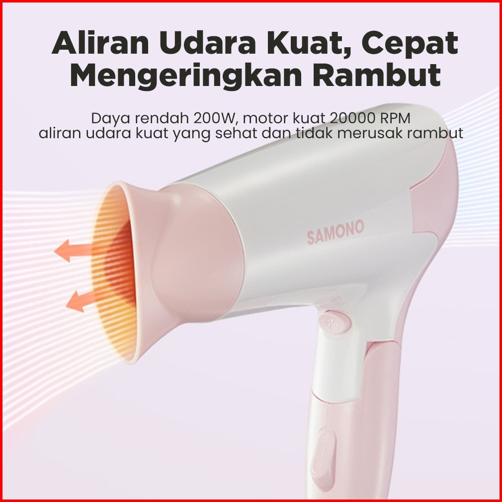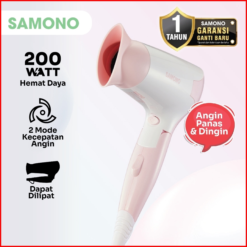 Samono Hair Dryer Pengering Rambut 2in1 Angin Dingin Dan Panas 200 Watt Bisa Dilipat Sw-hd20 Garansi 1 Tahun