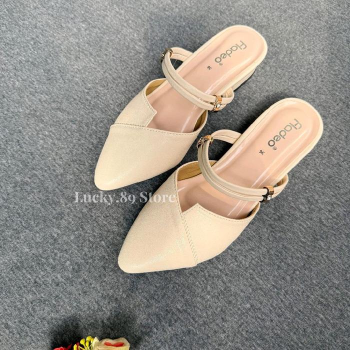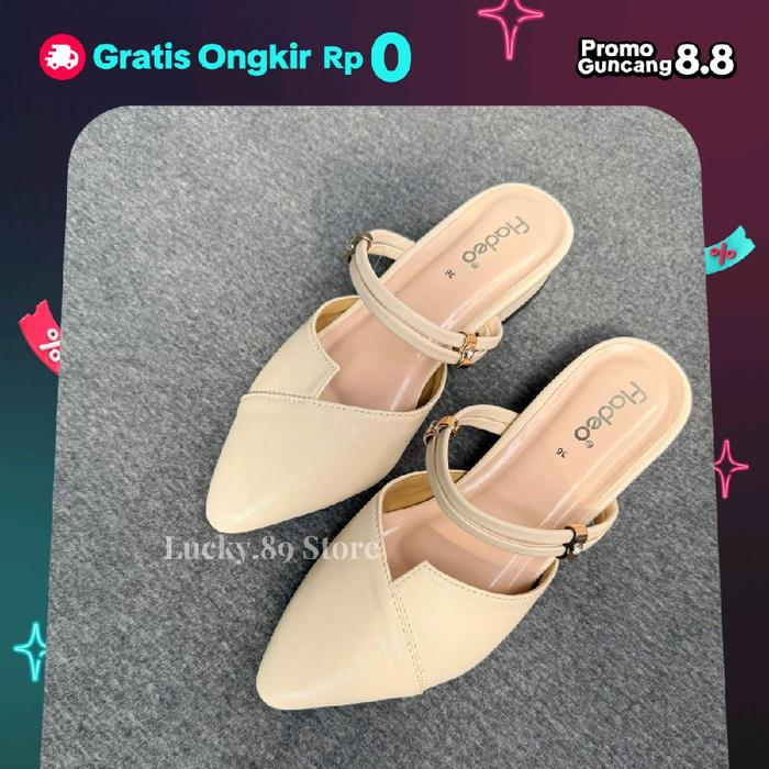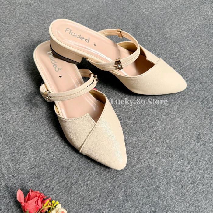 Fladeo Sandal Selop Wanita Heels 3Cm Hl Shoes Pesta Kondangan Mewah - Cream, 36