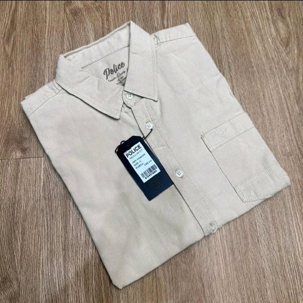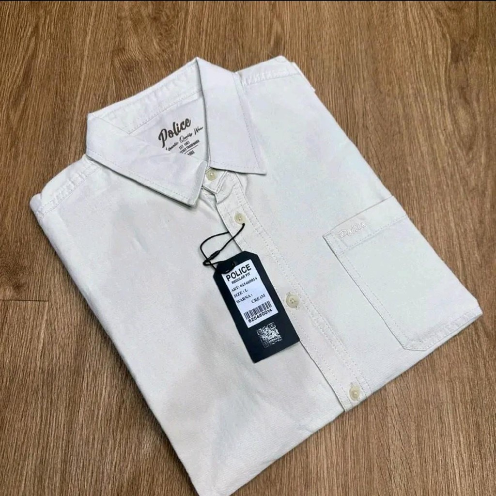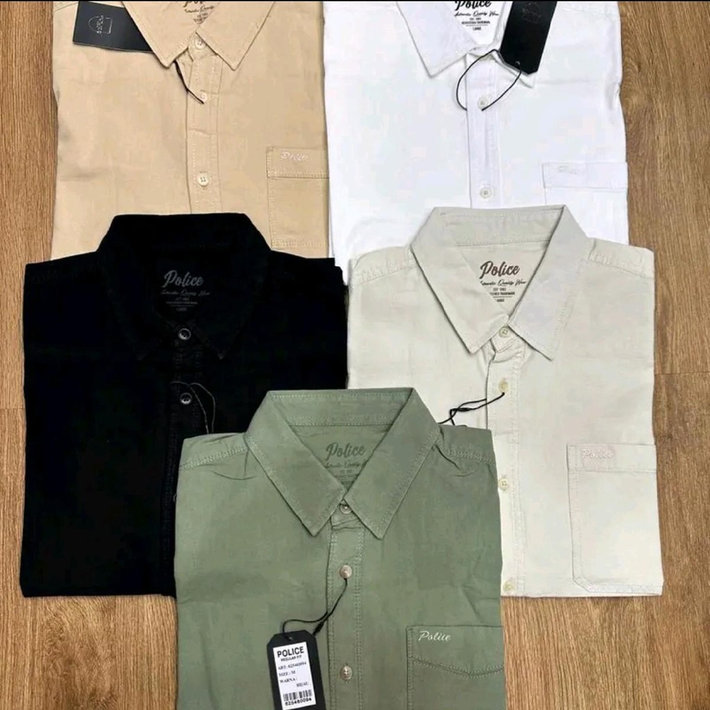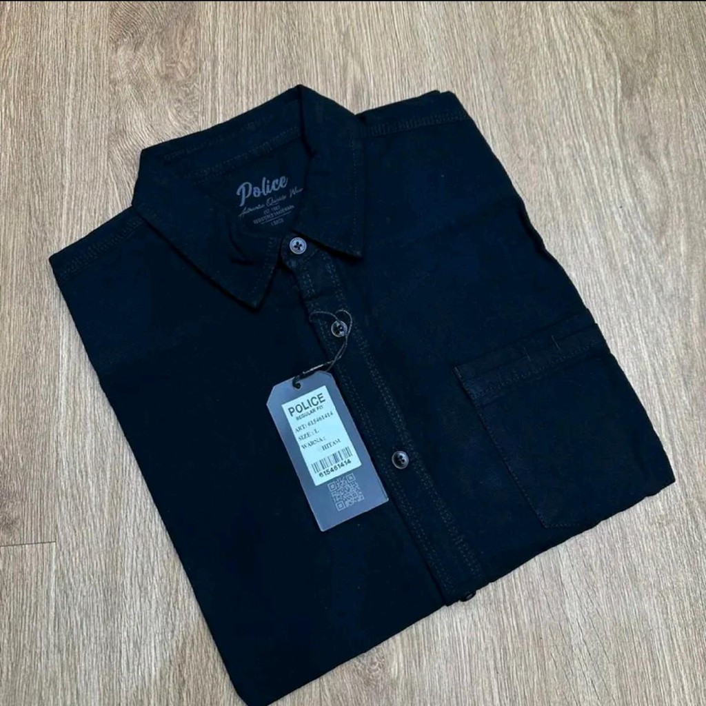 kameja Police original lengan pendek polos reguler fit Pria Pendek Baju Casual