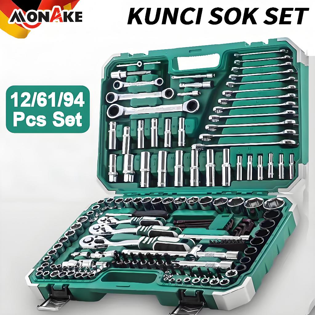 MONAKE Alat Jerman Kunci Sok Set 61/82/94 pcs Set 1/2'' and 1/4'' Lengkap Kunci Mata Sok inch Set P