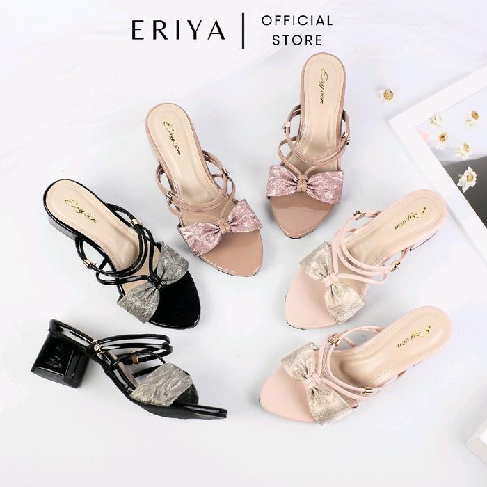 Eriya- Firly Heels Wanita 5Cm Pesta Kondangan Elegan High Shoes Sandal Kupu-Kupu Komuter Sandal & Sandal Jepit - Hitam,
