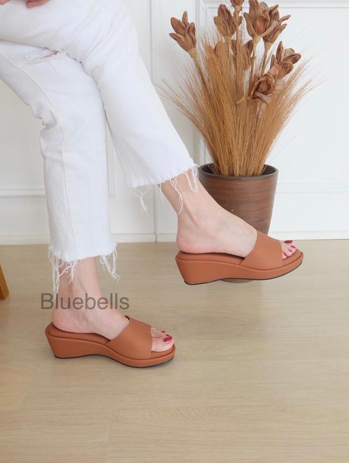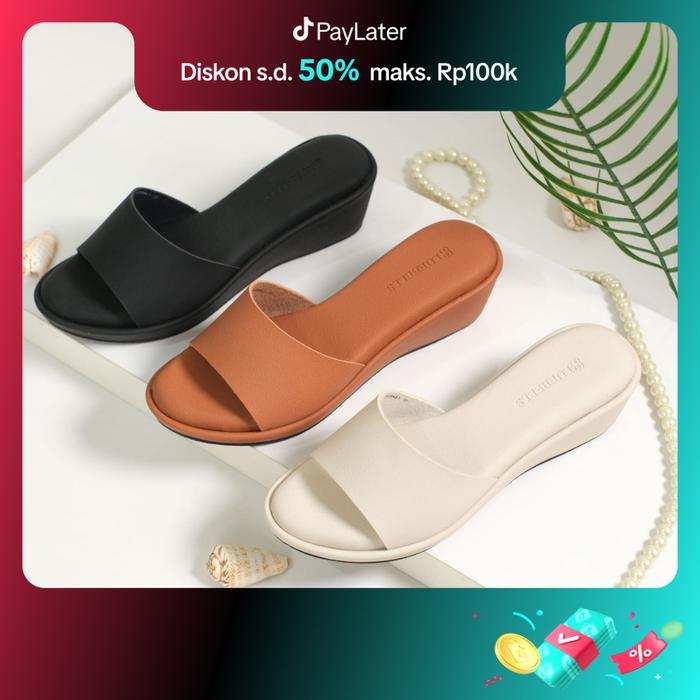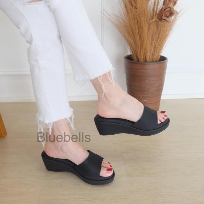 Bluebells Alisha.A Sendal Wedges Wanita 5Cm Karet Sandal (Tersedia Size 36-41) Perempuan - Hitam, 36