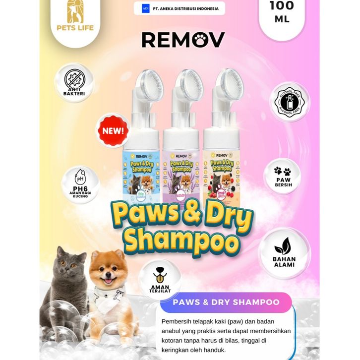 REMOV PAWS & DRY SHAMPOO 100ml KUCING ANJING - PEMBERSIH TELAPAK KAKI KUCING ANJING WATERLESS SHAMPOO
