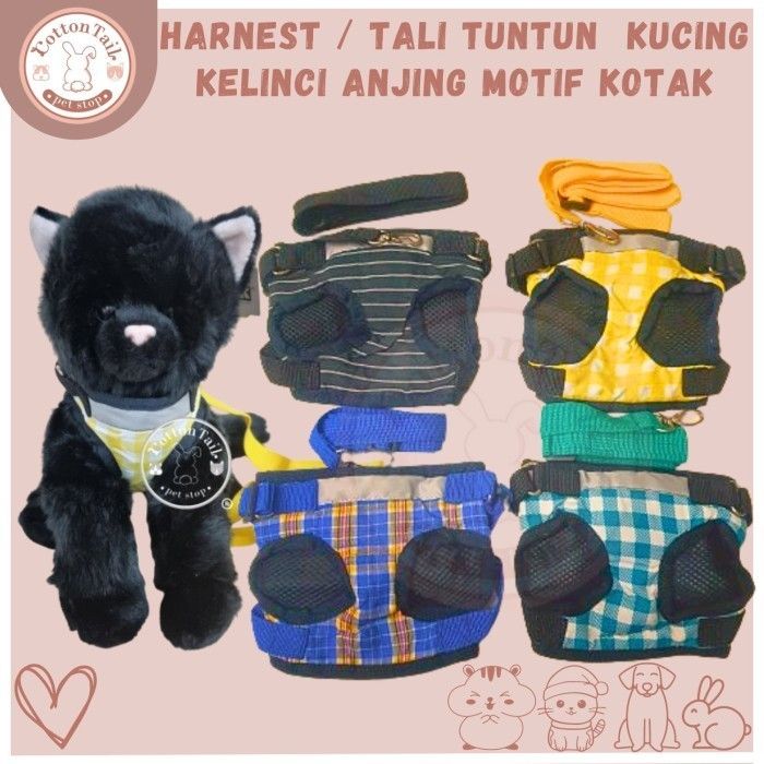 HARNESS ALL SIZE KUCING ANJING MOTIF KOTAK - TALI TUNTUN ALL SIZE KUCING ANJING KELINCI DLL MOTIF KOTAK
