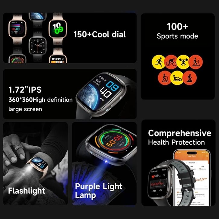 【Built-in GPTAI】Zero Smartwatch HT31 1.72" IPS Touch Screen ChatGPT Bluetooth Phone Call Message Alerts Push Waterproof