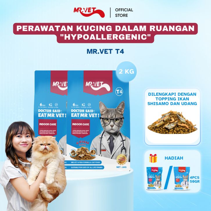 Mr. Vet - Kombo 2 Makanan Kucing Kering Mr.Vet 2KG T1,T2,T3 dan T4
