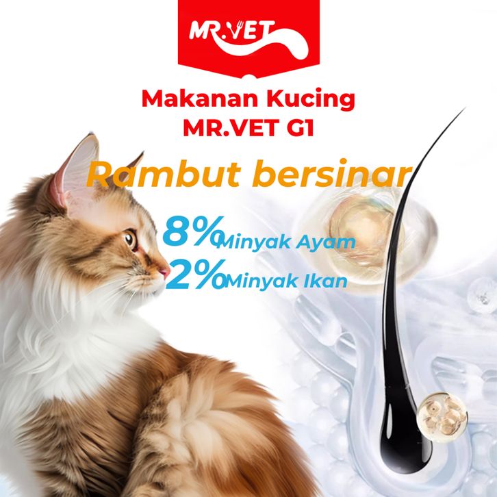 Mr.Vet G19rAIN FREE - Makanan Kucing 2kg untuk mendukung pencernaan dan perkembangan menyeluruh untuk kucing