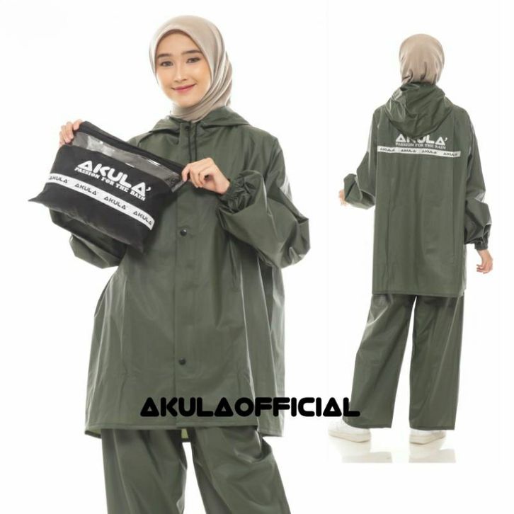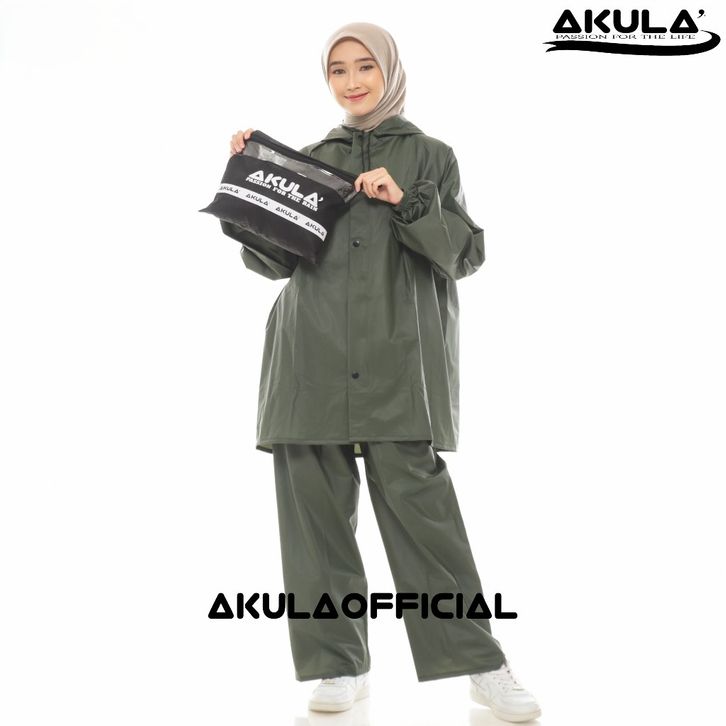 JAS HUJAN, RAINCOAT Pria Wanita Terbaik By AKULA Anti Rembes HIJAU ARMY