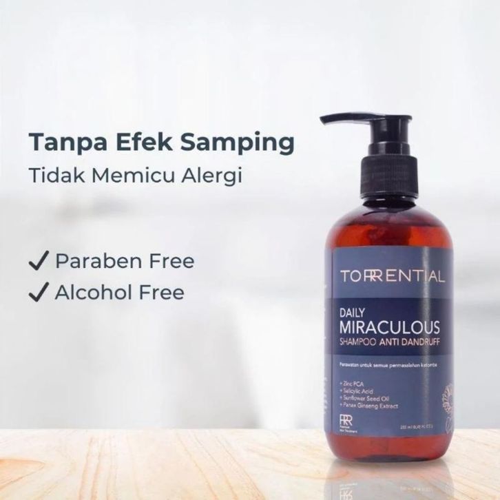 TORRENTIAL Shampoo Anti Ketombe Daily Miraculous 250 ml Sunflower Seed Oil, Salicylic Acid Mengatasi Jamur, Gatal & Men