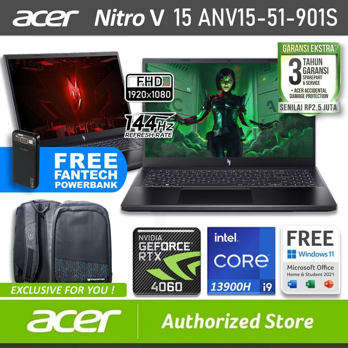 Acer Nitro V 15 Anv15 51 901S Rtx4060 Intel Core I9 13900H 16/512Ssd W11 Ohs Fhd Ips 144Hz Black - Laptop, 16/512Gb Ssd