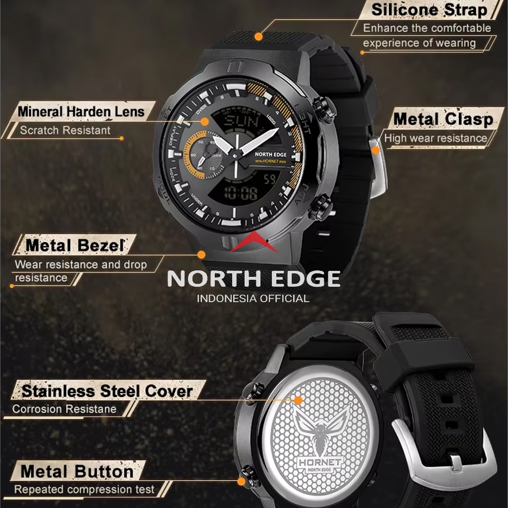 [Mall] NORTH EDGE 2022 HORNET MEN'S DIGITAL WATCH RUNNING CYCLING SPORTS WATCHES WATERPROOF 50M WORLD TIME SPEED ILLUMINATOR WR