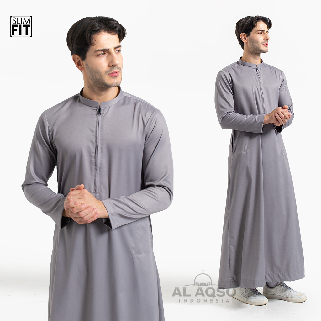 [Mall] AL AQSO | JUBAH SLIMFIT THOBE GAMIS PRIA MUSLIM DEWASA PREMIUM NAVY ABU RESLETING LENGAN PANJANG | JUBAH ALI