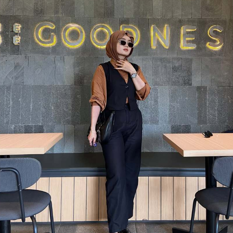 [Mall] EMWEHA One Set Vest Bianca Celana Panjang Bahan Linen Rami Setelan Wanita Kekinian