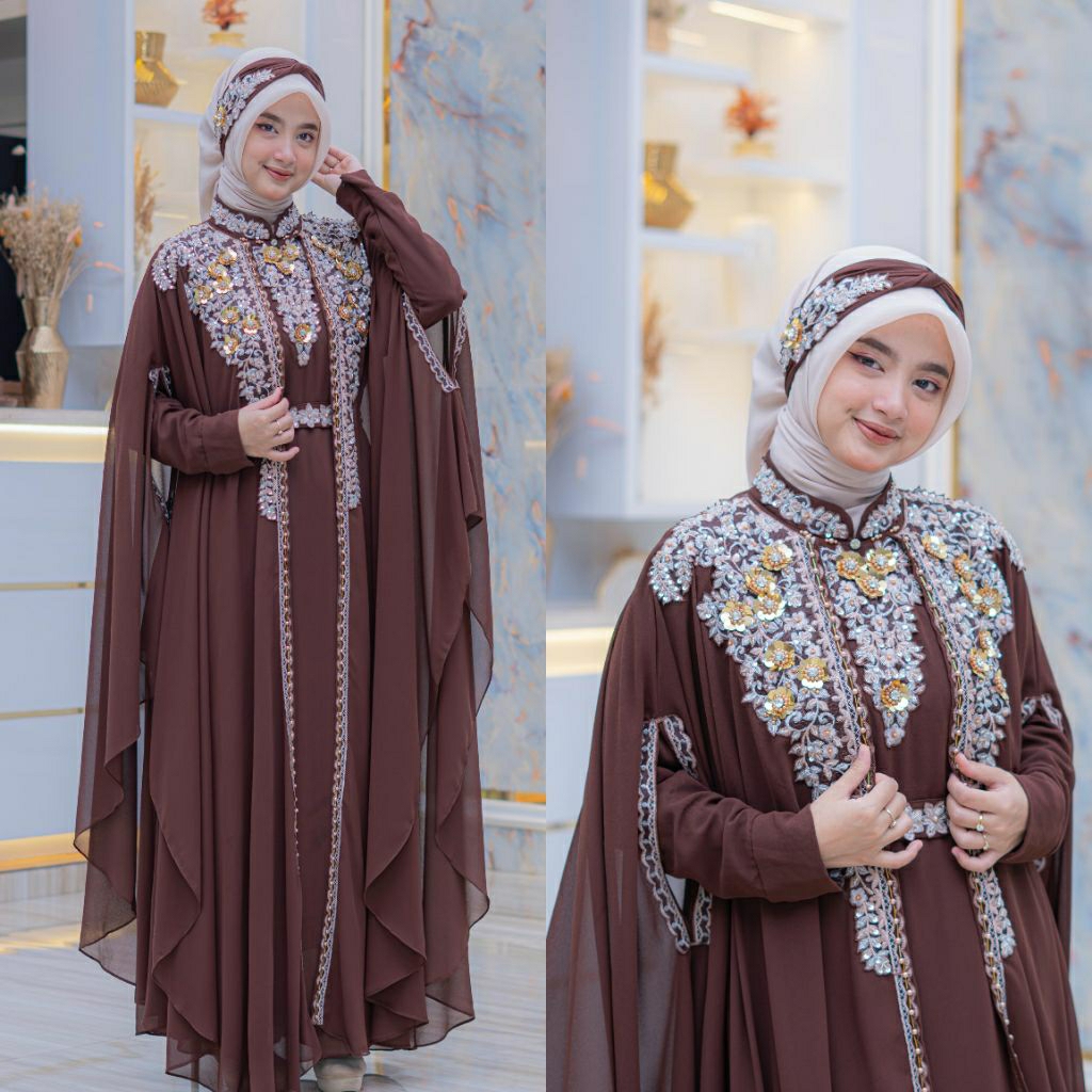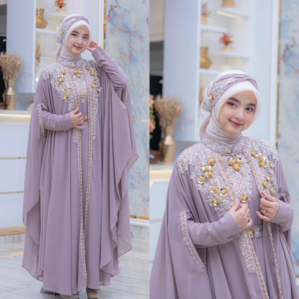 [Mall] ZEINA KAFTAN WANITA MUSLIM SET BELT BAHAN CERUTY BABYDOLL FULL PAYET BORDIR MEWAH TERBARU
