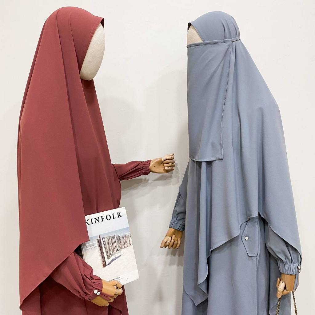 [Mall] QALLA SET (REGULER SIZE) UMROH ABAYA KHIMAR FREE CADAR TALI BY ZURILABEL