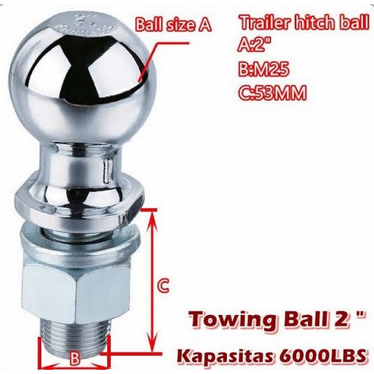 ToW -I Ng Ball 2 Inch Kapasitas 6000LBS - Hitch Ball Tow Ball Bola 2"