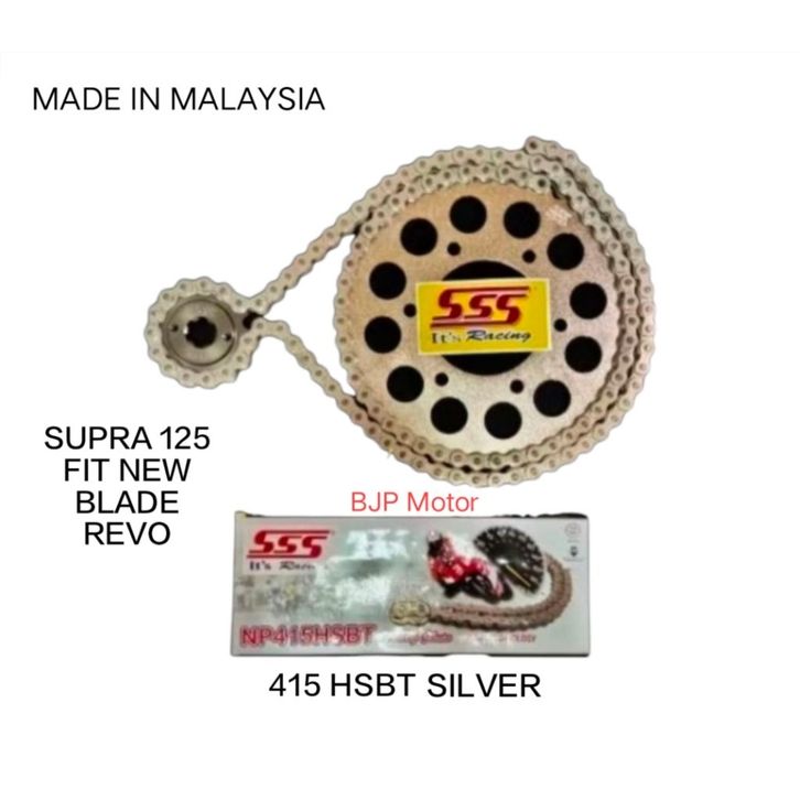 Gear set SSS 415 Supra 125 Revo rantai SSS 415 HSBT 9old Silver pilihan ukuran gir depan dan belakang