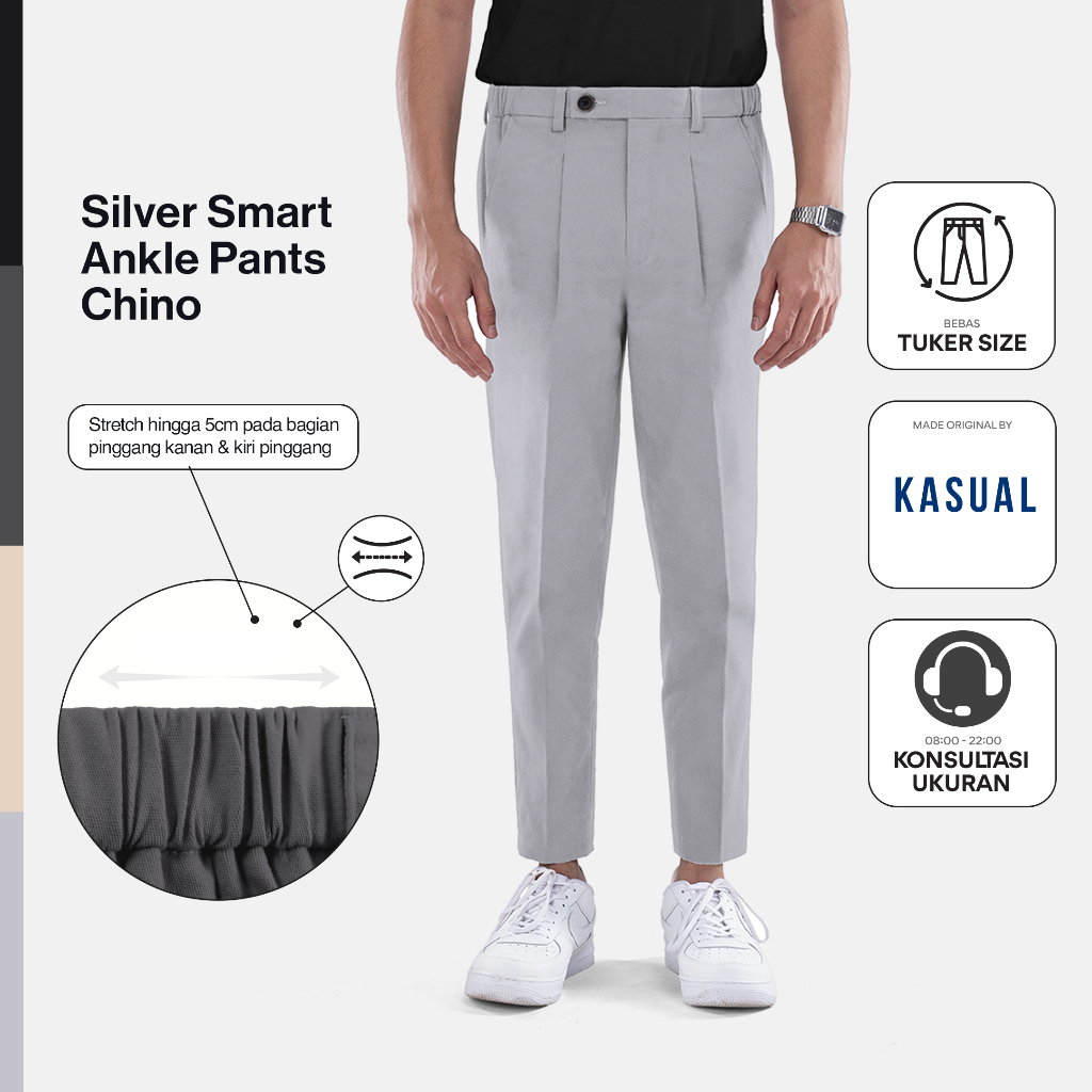 [Mall] KASUAL CELANA SILVER GREY SMART WAIST ANKLE CHINOS STRETCH PRIA KERJA FORMAL KANTOR