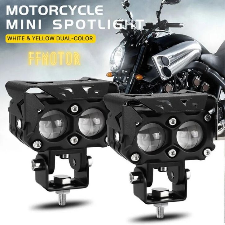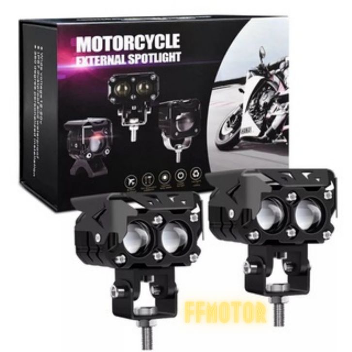 Lampu sorot 2 mata 2 Led laser gun high low putih kuning super bright 1 set