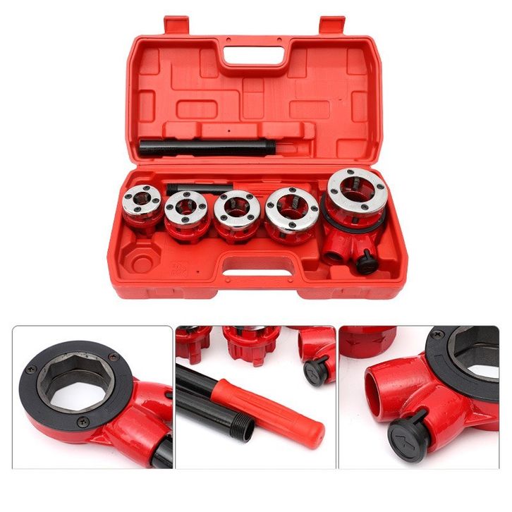 Senai Pipa Manual 1 Set Alat Drat Pipa Besi Tipe 62 1/2" - 1 1/4 " Snei Pipa Ratchet Die Stock